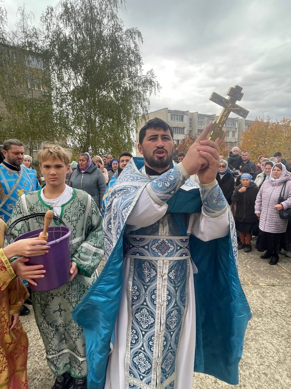 По завершении богослужения с чтением Святого Евангелия и окроплением молящихся святой водой был совершён крестный ход вокруг храма, к которому присоединился настоятель Покровского прихода села Коротное протоиерей Павел Пысларь с паствой.