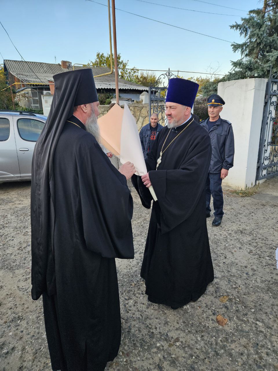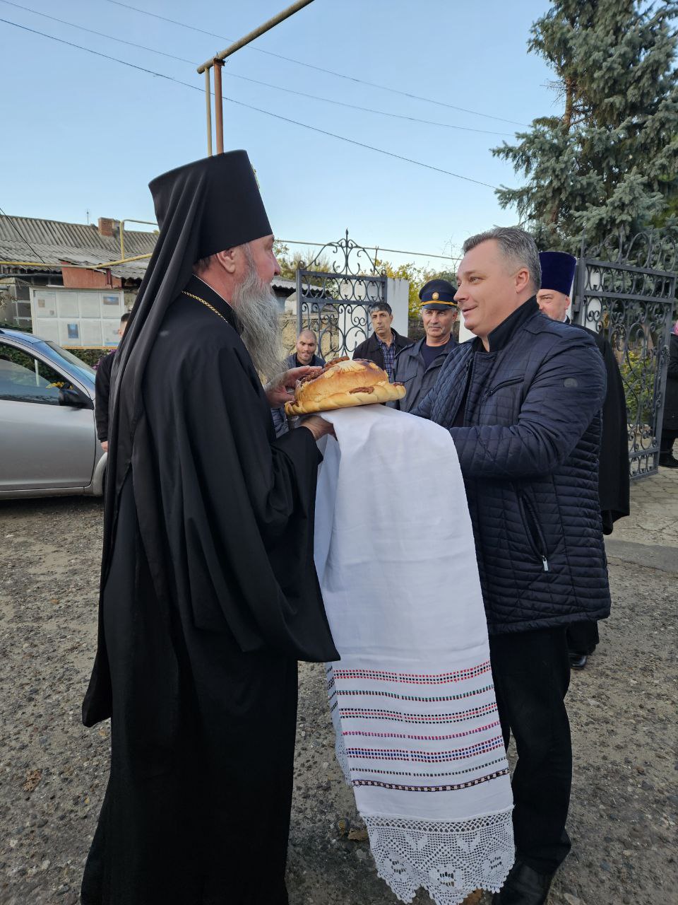 Высокопреосвященнейшего Владыку у святых врат цветами и хлебом-солью встретили благочинный Дубоссарского округа о. Георгий и глава Государственной администрации Дубоссарского района и города Дубоссары Руслан Чабан.