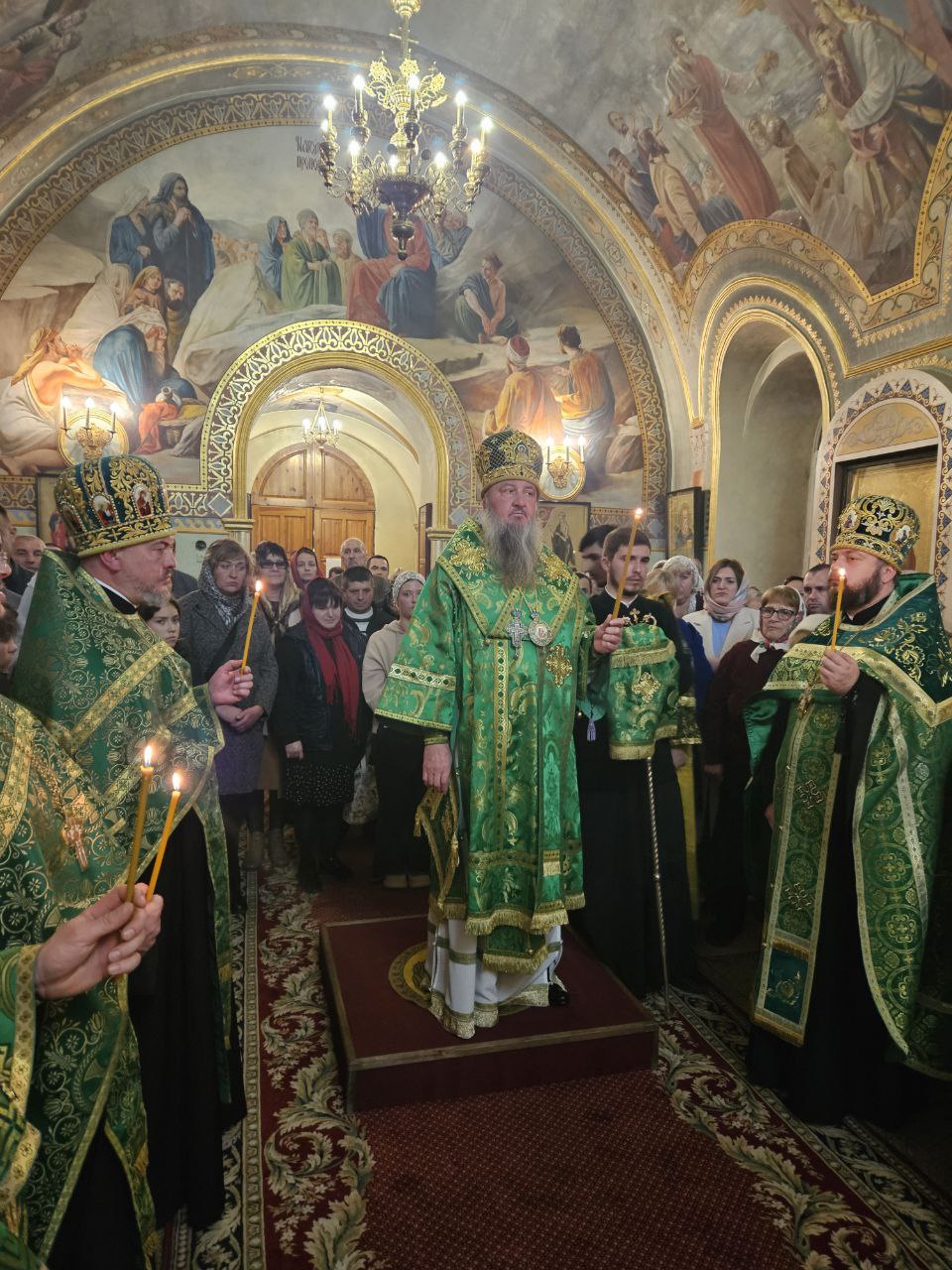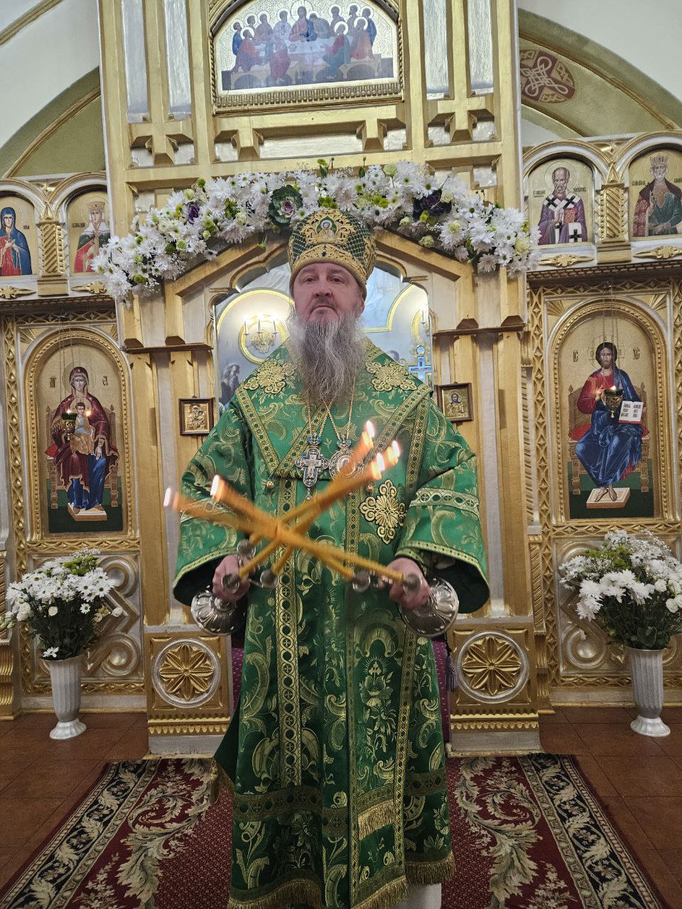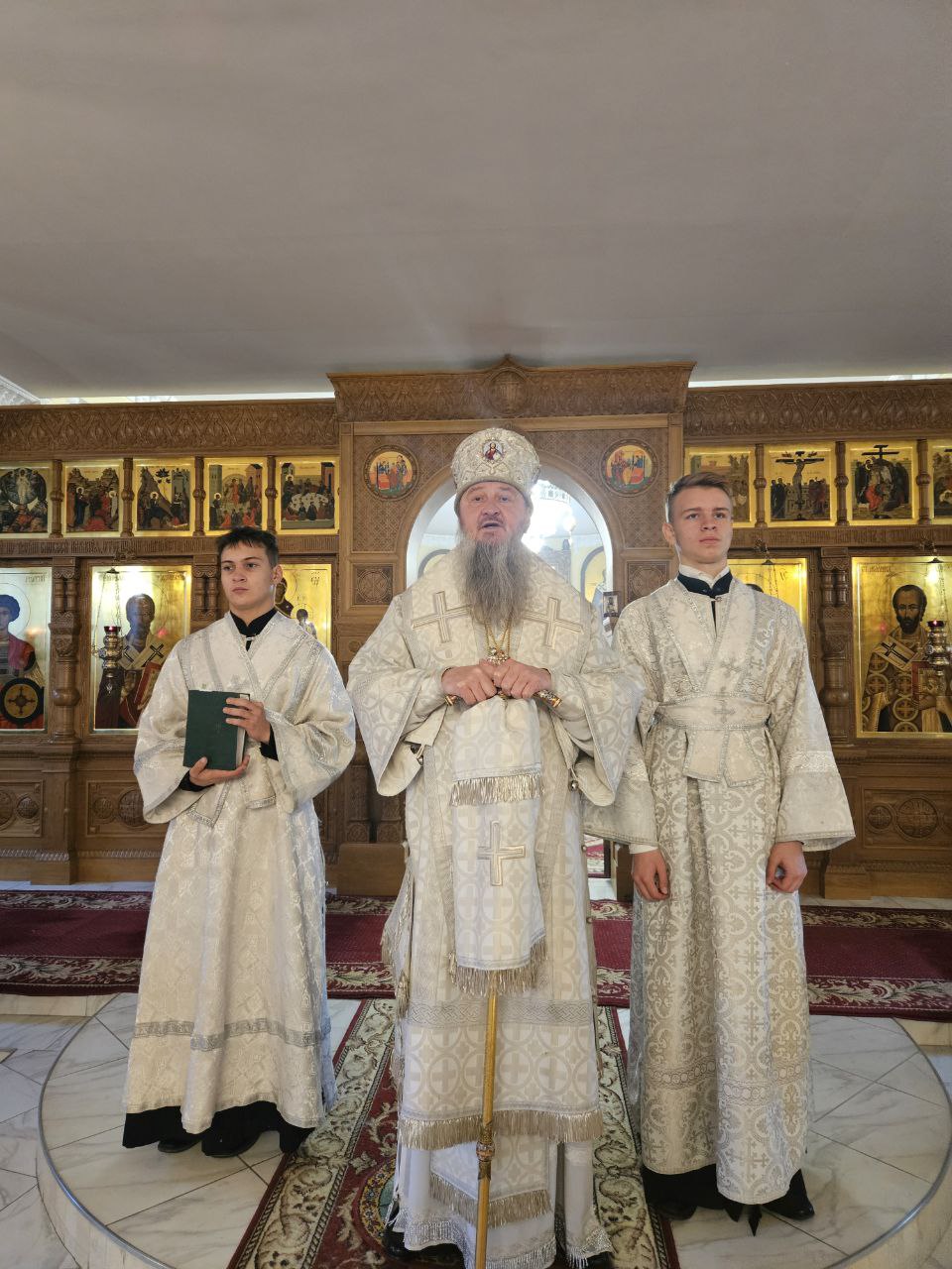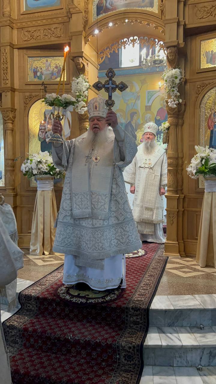 За богослужением Высокопреосвященнейшему Владыке настоятелю сослужили ключарь и причт кафедрального собора.