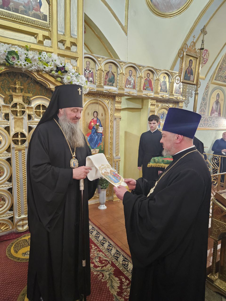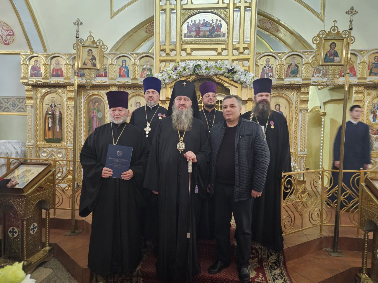 Настоятель храма протоиерей Андрей Данилеску поблагодарил Архипастырей за совместную молитву и преподнёс в дар архиепископу Савве – панагию, а архиепископу Никодиму – архиерейский клобук. Правящий Архиерей Тираспольско-Дубоссарской епархии удостоил высоких наград – епархиальных знаков сщмч. Стефана Слободзейского – Владыку Никодима и матушку Тамару Данилеску.