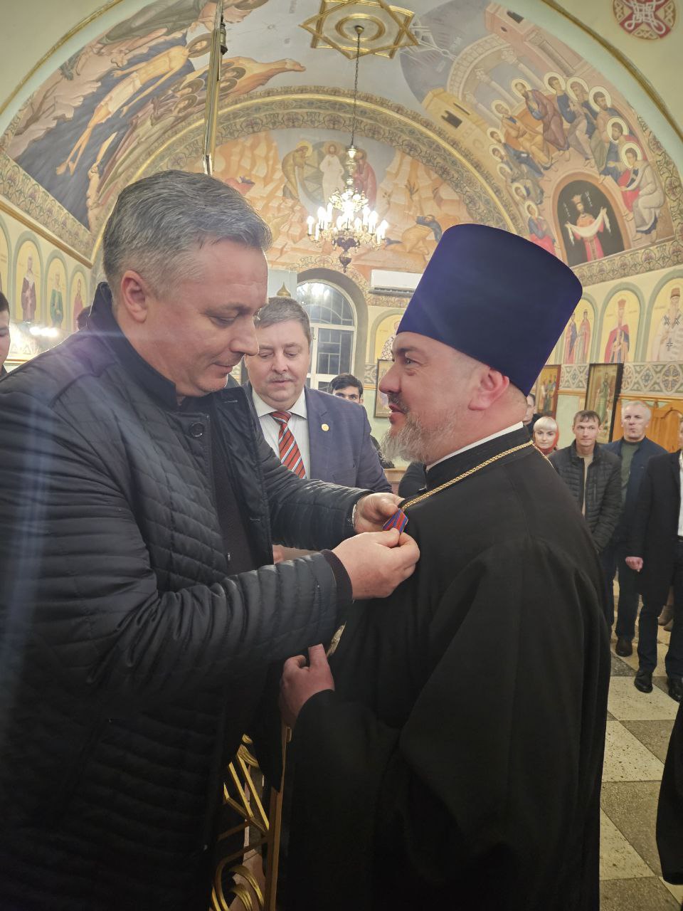 В завершение богослужения Архипастырь обратился к духовенству и прихожанам со словом назидания, после чего преподнёс в дар кафедральному собору Всех святых закладку для Святого Евангелия. Затем глава дубоссарской госадминистрации по поручению Президента ПМР Вадима Николаевича Красносельского вручил благочинному и некоторым клирикам Дубоссарского округа государственные награды.