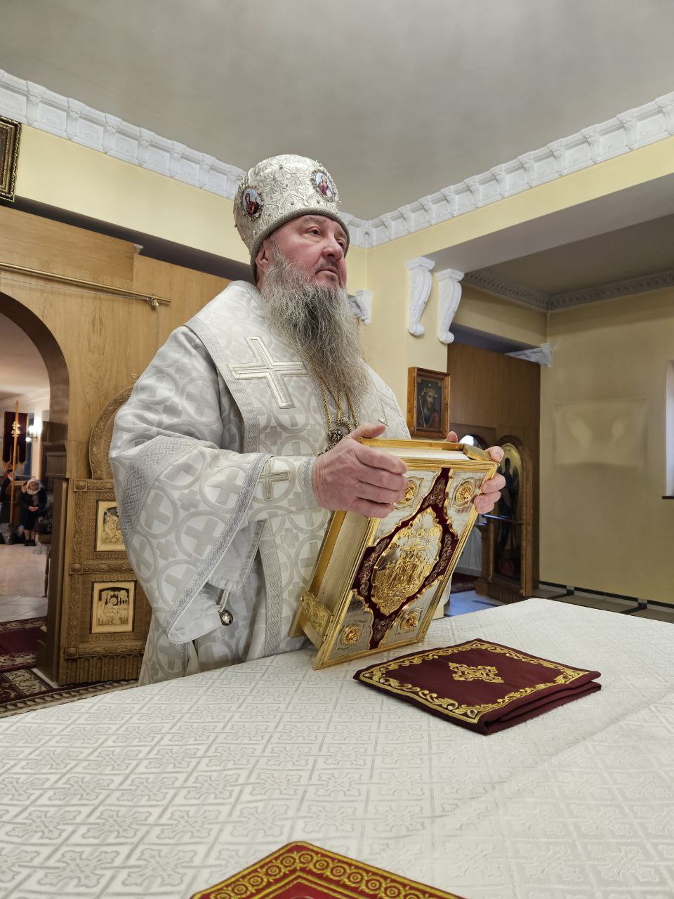 На полиелее Правящий Архиерей прочёл воскресный отрывок из Евангелия от Иоанна, повествующий об уверении апостола Фомы (Ин. 20:19–31). Затем Архипастырь обратился к молящимся с архипастырским словом, поздравив всех с наступающим воскресным днём.