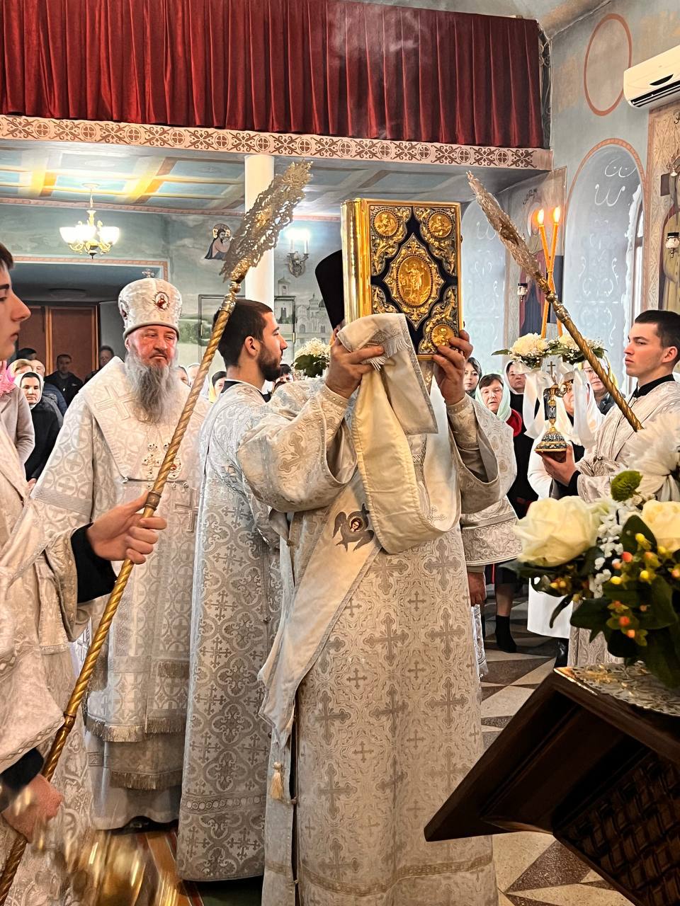 По отпусте Божественной литургии Владыкой Саввой и духовенством было совершено славление перед Казанским образом Божией Матери, к Которой Архипастырь обратился со словами молитвы, испрашивая пастве «дух сокрушения, смирение сердца, чистоту помышлений, исправление греховныя жизни и оставление прегрешений».