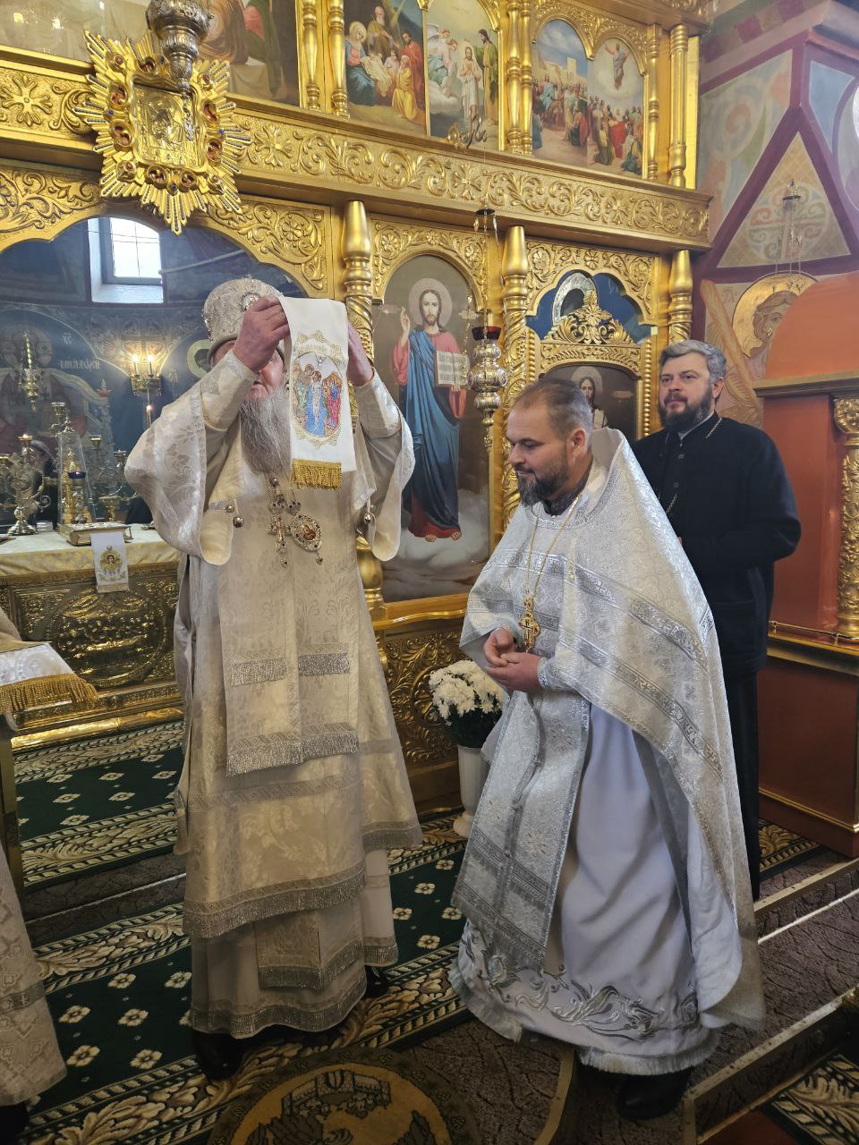 В знак архипастырского внимания Правящий Архиерей вручил настоятелю храма закладку для Святого Евангелия, выразив благодарность за усердные пастырские труды и заботу о приходе.