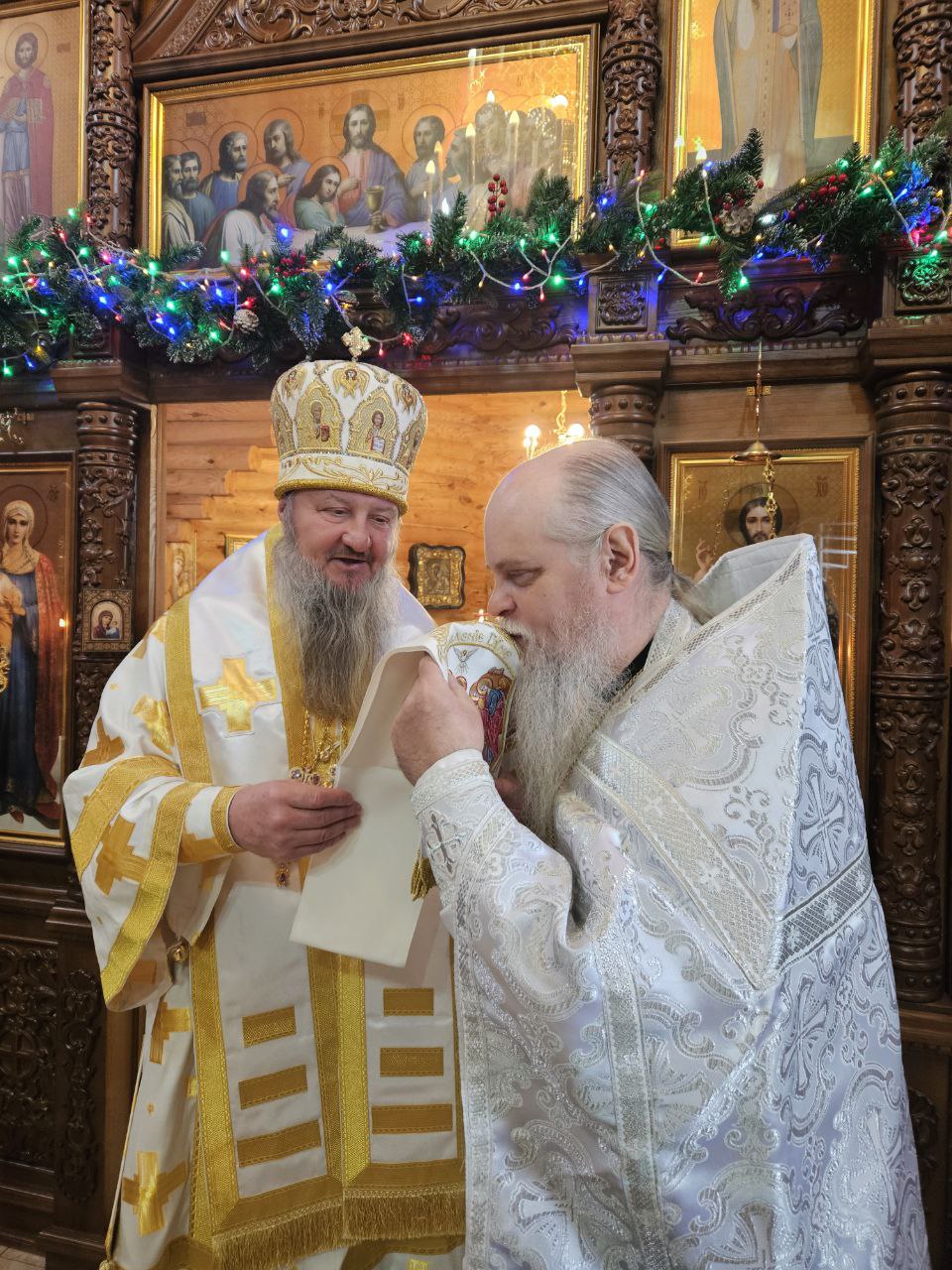 По окончании богослужения было совершено славление пред иконой праздника, после чего Высокопреосвященнейший архиепископ Савва обратился к молящимся с архипастырским словом проповеди. Владыка напомнил о духовном значении праздника Рождества Христова, призвал хранить в сердцах мир, любовь и благодарность Богу, а также не оставлять молитвенного общения с Церковью.