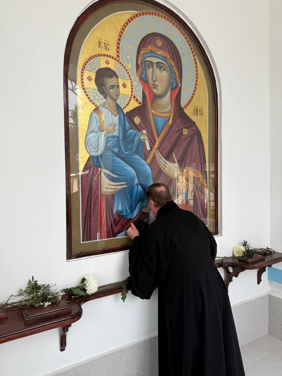 Правящий Архиерей поклонился чтимому образу Пресвятой Богородицы и вознёс молитвы о вверенной ему пастве, о мире и благополучии на родной земле, а также о всём христианском мире, испрашивая заступничества и милости Царицы Небесной.