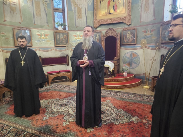 Высокопреосвященнейшему Владыке настоятелю сослужили клирик прихода иеромонах Иоанн (Трайто), а также клирик кафедрального собора Рождества Христова протодиакон Сергий Афтени.