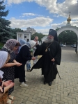 У святых врат Высокопреосвященнейшего Владыку настоятеля встретили прихожане кафедрального собора, испрашивавшие архиерейского благословения у своего Архипастыря.