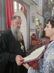 На малом входе за труды во славу Святой Матери Церкви права ношения наперсного креста с украшениями был удостоен клирик Воздвиженского прихода иеромонах Иоанн (Трайто).