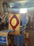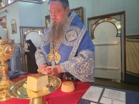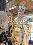 На полиелее Правящий Архиерей прочитал евангельское зачало, положенное на всех вечерних богослужениях, совершаемых в честь Божией Матери. Затем Владыка Савва обратился к прихожанам со словом назидания и помазал освящённым елеем духовенство и мирян.