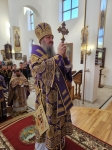 По отпусте Божественной литургии было совершено славление Честному и Животворящему Кресту Господню. Затем Его Высокопреосвященство обратился к молящимся с архипастырским словом.