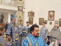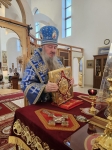 Высокопреосвященнейшему Владыке сослужили соборное духовенство, а также настоятель Благовещенского храма протоиерей Алексей Головаш и проходящий богослужебную практику иеромонах Никанор (Цверкун).