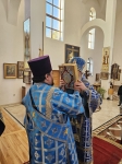 В завершение богослужения архиепископ Савва и духовенство совершили молебствие пред списком Иерусалимской иконы Пресвятой Богородицы, за которым поминались ктиторы и благотворители прихода. Владыка обратился к Царице Небесной со словами молитвы.