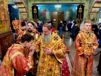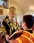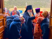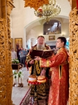 Священноархимандрита обители у входа в храм встретил наместник монастыря архимандрит Зосима (Гржибовский), после чего Архипастырь проследовал в храм для совершения богослужения.