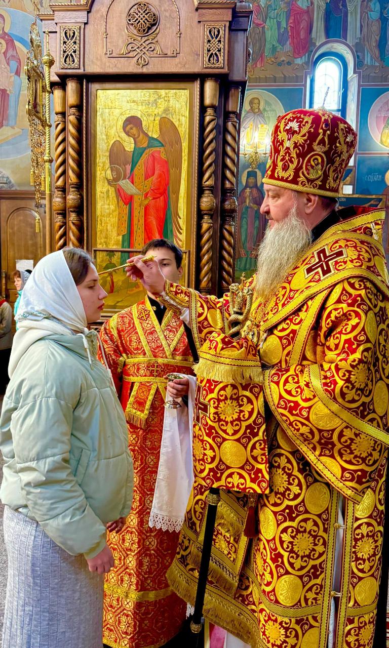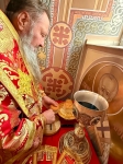 Затем архиепископ Савва совершил помазание духовенства и многочисленных прихожан, собравшихся на церковную молитву, чтобы с благодарностью Богу продолжить празднование Светлого Христова Воскресения, освящённым елеем.