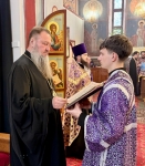 В завершение богослужения было совершено славление пред образом ныне прославляемого святителя Филарета Московского. Правящий Архиерей прочёл молитву этому Божию угоднику, после чего, под пение величания святителю, поклонился его честному образу.