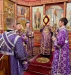 Высокопреосвященнейшему Владыке настоятелю сослужили ключарь кафедрального собора Рождества Христова протоиерей Павел Кузменых, клирик Воздвиженского прихода иеромонах Иоанн (Трайто) и соборный клирик протодиакон Сергий Афтени.