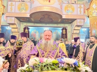Его Высокопреосвященству сослужили секретарь епархии протоиерей Иоанн Калмык, ключарь кафедрального собора Рождества Христова протоиерей Павел Кузменых, клирики Введенско-Пахомиева монастыря протоиерей Анатолий Каушан и иерей Сергий Грозовский, клирик кафедрального собора Рождества Христова протодиакон Сергий Афтени.