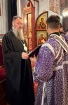 Правящему Архиерею сослужили клирик прихода иеромонах Иоанн (Трайто) и клирик кафедрального собора Рождества Христова протодиакон Сергий Афтени.