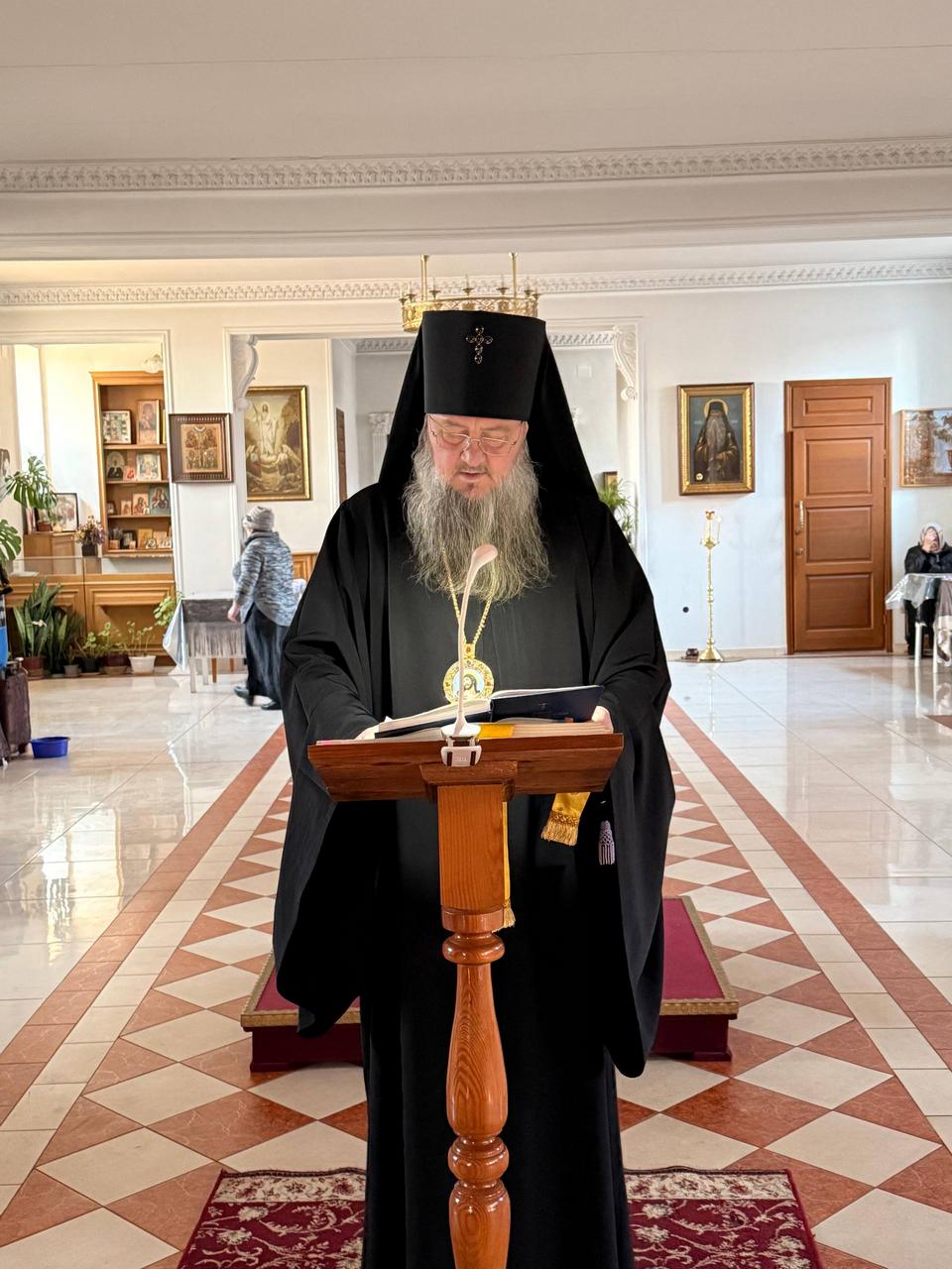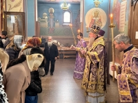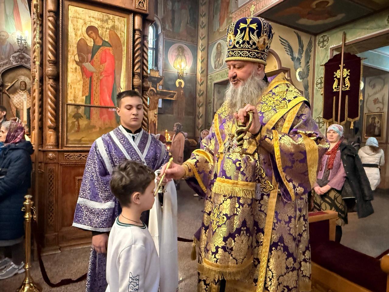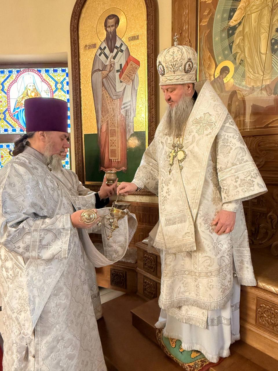 За богослужением Правящему Архиерею сослужили ключарь и клирики кафедрального собора. Вместе с духовенством и прихожанами Владыка вознёс молитвы, готовя верующих к празднованию Крестопоклонной недели, которая занимает особое место в середине Святой Четыредесятницы.