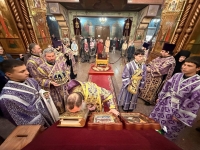 После великого славословия при пении Трисвятого архиепископ Савва торжественно изнёс Крест Господень на середину храма. Под пение тропаря «Кресту Твоему поклоняемся, Владыко…» духовенство и верующие совершили троекратное поклонение святыне – орудию нашего спасения. По завершении чинопоследования Высокопреосвященнейший Владыка Савва помазал духовенство и мирян освящённым елеем.