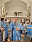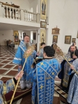 На полиелее Высокопреосвященнейший Владыка прочитал Евангельский отрывок, установленный Церковью для богородичных праздников, после чего обратился к духовенству и пастве с архипастырским словом назидания и совершил помазание духовенства и мирян освящённым елеем.