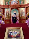 По отпусте Божественной литургии было совершено славление перед образом Благовещения Пресвятой Богородицы, после чего духовенство и прихожане с благоговением поклонились святому образу.