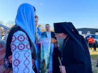 У входа в храм Высокопреосвященнейшего Владыку встретили глава Каменского района и города Каменки Сергей Сокирка, первый помощник Правящего Архиерея архимандрит Иоанн (Данилеску), председатель юридического отдела епархии Александр Орехов, настоятель храма, православные верующие Каменки.