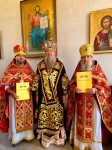 За богослужением Архипастырю сослужили благочинные Каменского и Рыбницкого округов протоиерей Олег Чеколтан и архимандрит Виктор (Саяпин), настоятель Успенского храма протоиерей Сергий Мороз, духовенство Каменского, Центрального и Рыбницкого благочиний епархии.