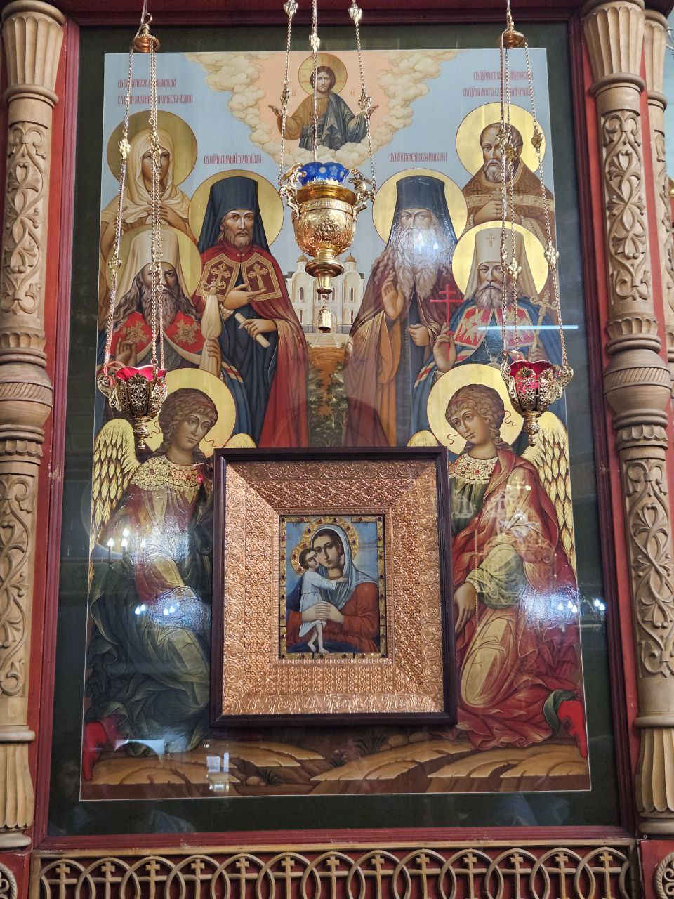 В завершение богослужения архиепископ Савва и духовенство совершили молебствие пред списком Иерусалимской иконы Пресвятой Богородицы, за которым поминались ктиторы и благотворители прихода. Владыка обратился к Царице Небесной со словами молитвы.