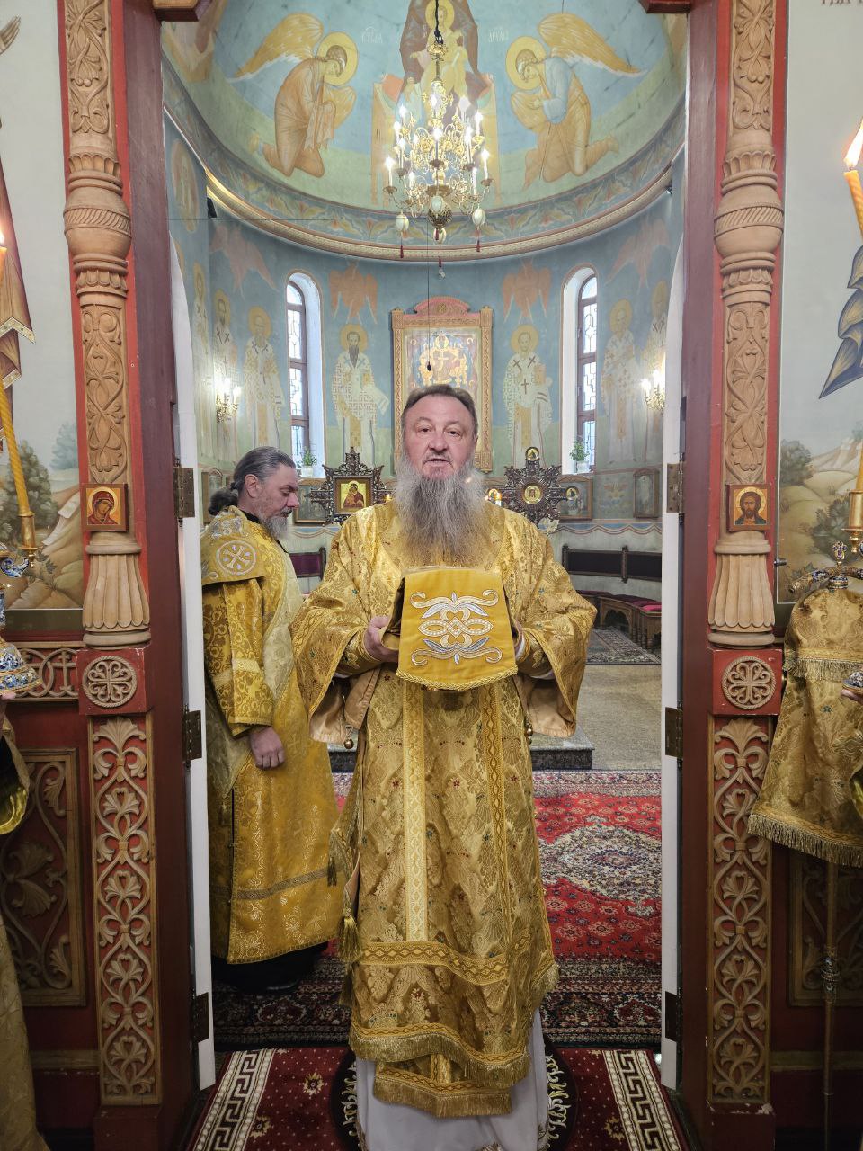 В завершение богослужения было совершено славление пред образом вмч. Димитрия Солунского, после чего протоиерей Николай Койчев обратился к Архипастырю со словами благодарности за архиерейское посещение и радость совместной молитвы.
