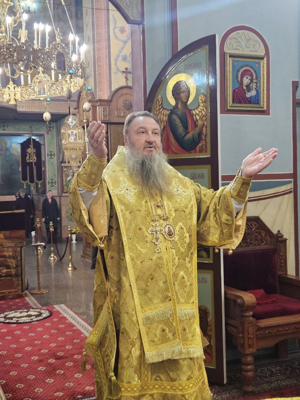 Акафист 14.11.2025Высокопреосвященнейшему Владыке сослужили благочинный Бендерского округа протоиерей Михаил Лунгу, настоятели тираспольских храмов ап. Андрея Первозванного и новомучеников и исповедников Церкви Русской протоиереи Валерий Лознян и Георгий Лисник, клирик храма Покрова Пресвятой Богородицы иерей Владимир Фенота, ключарь и духовенство кафедрального собора.
