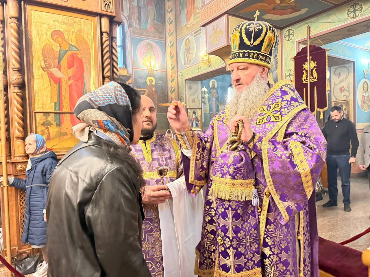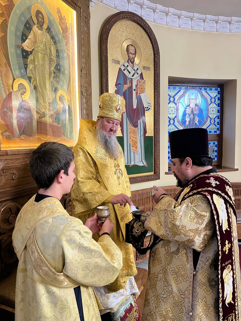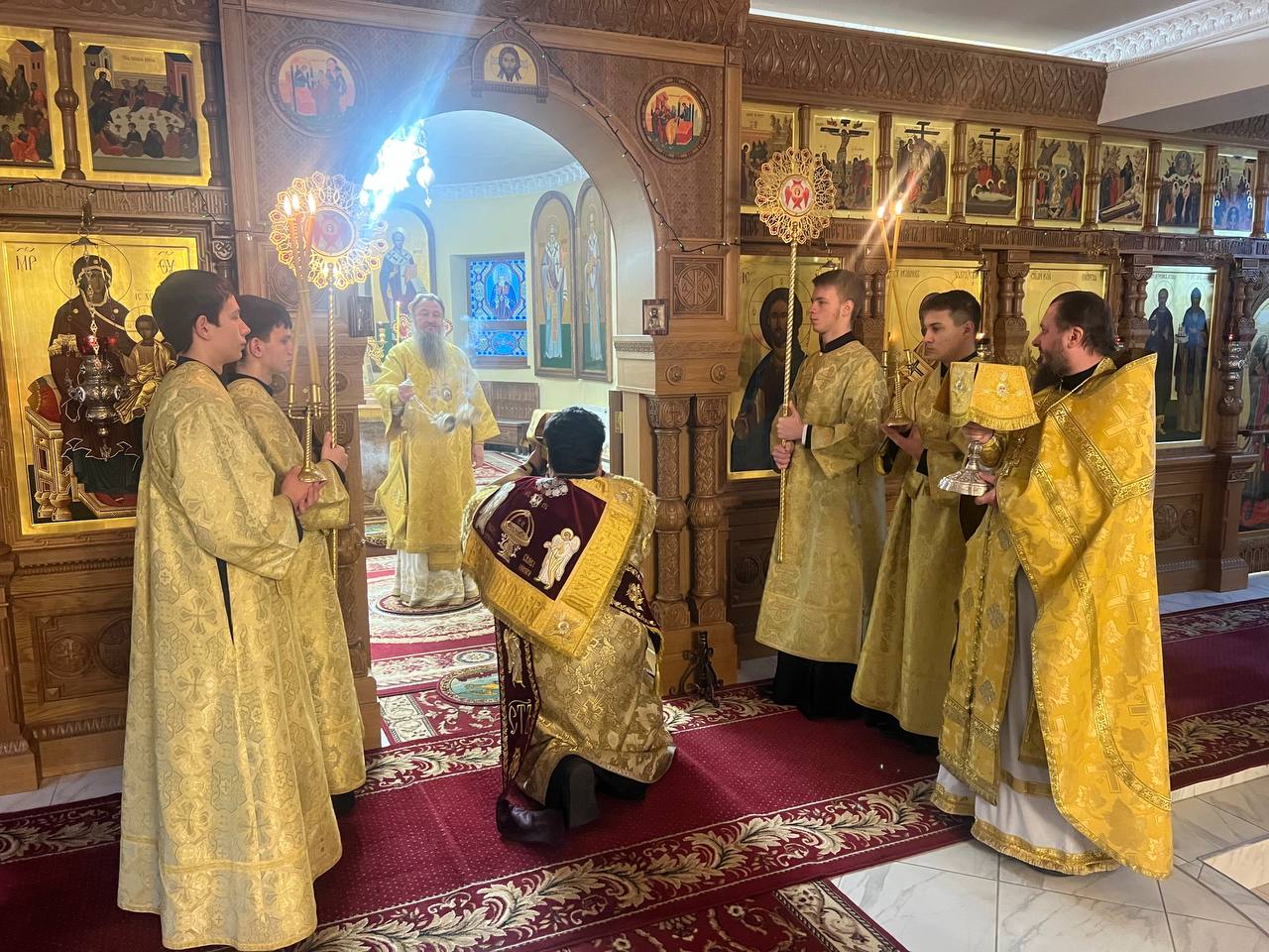 Высокопреосвященнейшему Владыке настоятелю сослужили клирик прихода иеромонах Иоанн (Трайто) и клирик кафедрального собора Рождества Христова диакон Геннадий Гнатюк.