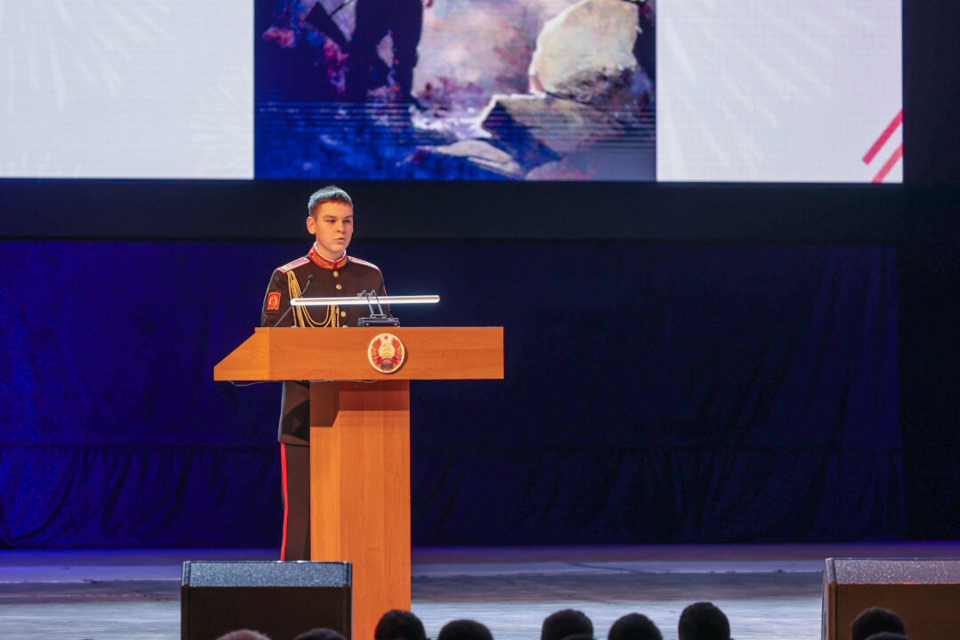 Также к собравшимся обратился министр обороны генерал-лейтенант Олег Обручков, который отметил значение Великой Отечественной войны для судьбы народа и подчеркнул важность воспитания молодёжи в духе патриотизма, уважения к истории и верности Родине.