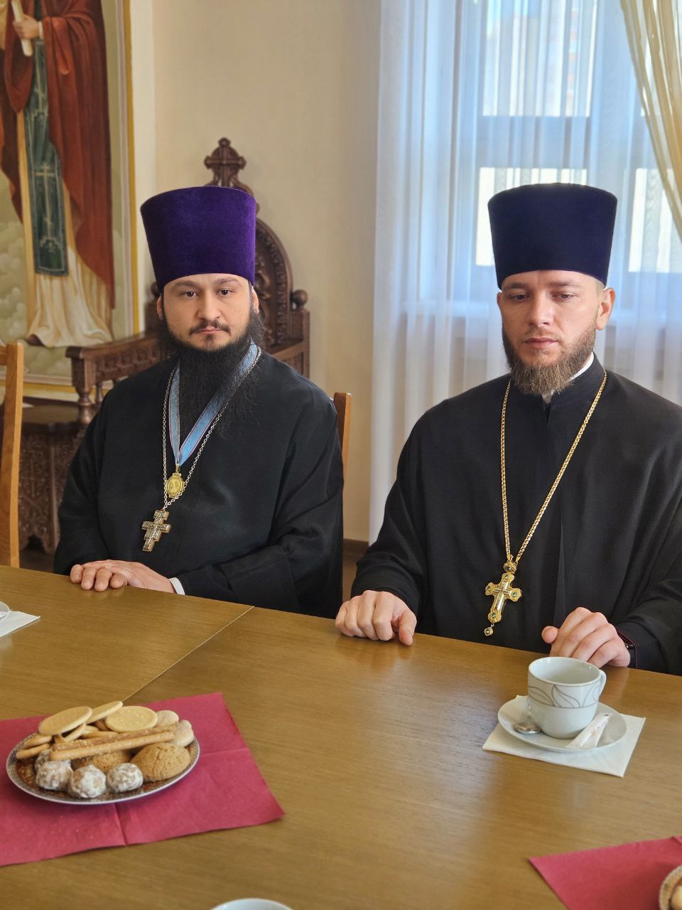 10 марта в рабочем кабинете Управляющего Тираспольско-Дубоссарской епархией состоялась рабочая встреча Его Высокопреосвященства архиепископа Тираспольского и Дубоссарского Саввы с министром обороны Приднестровской Молдавской Республики генерал-лейтенантом О. А. Обручковым.