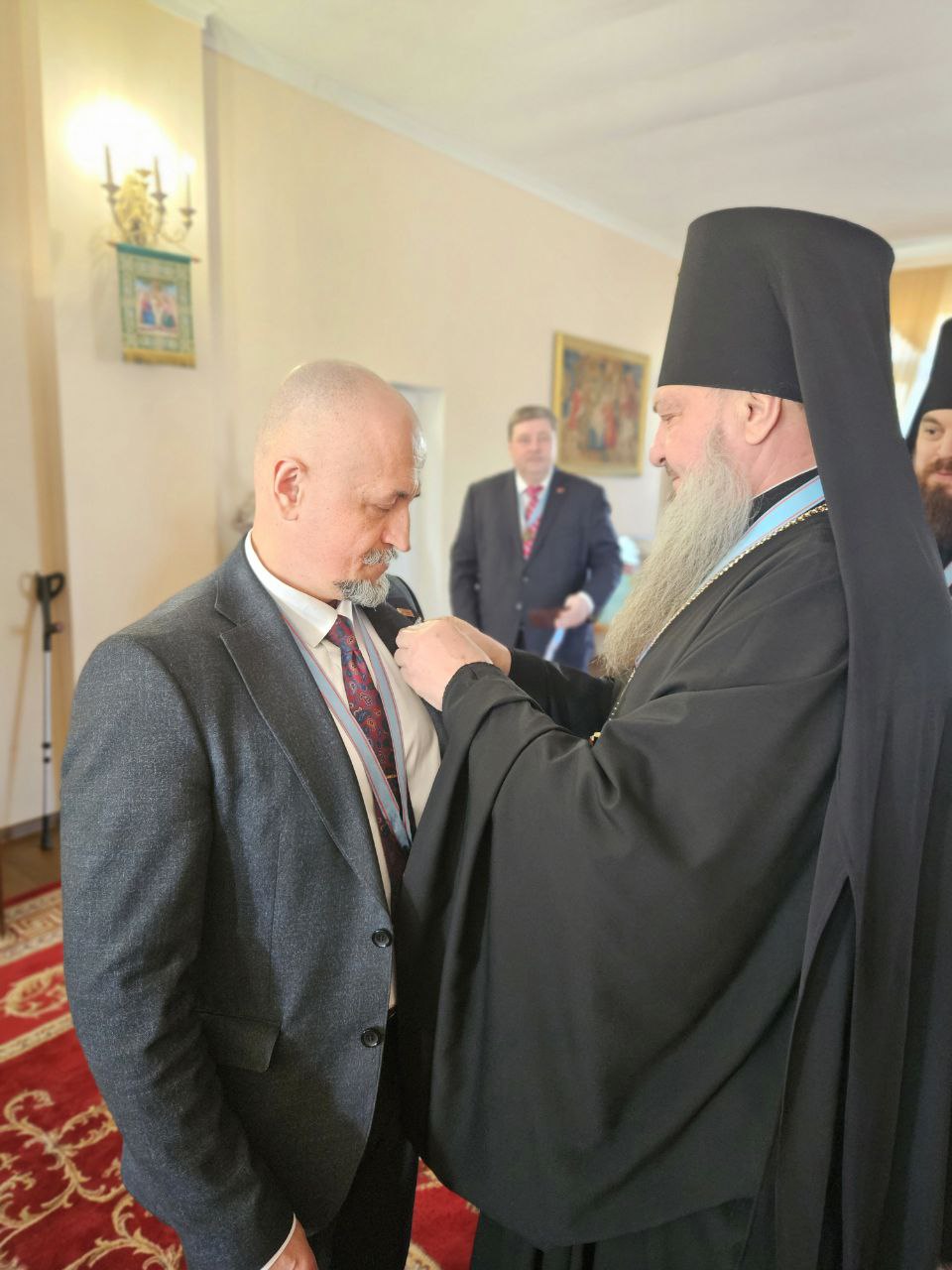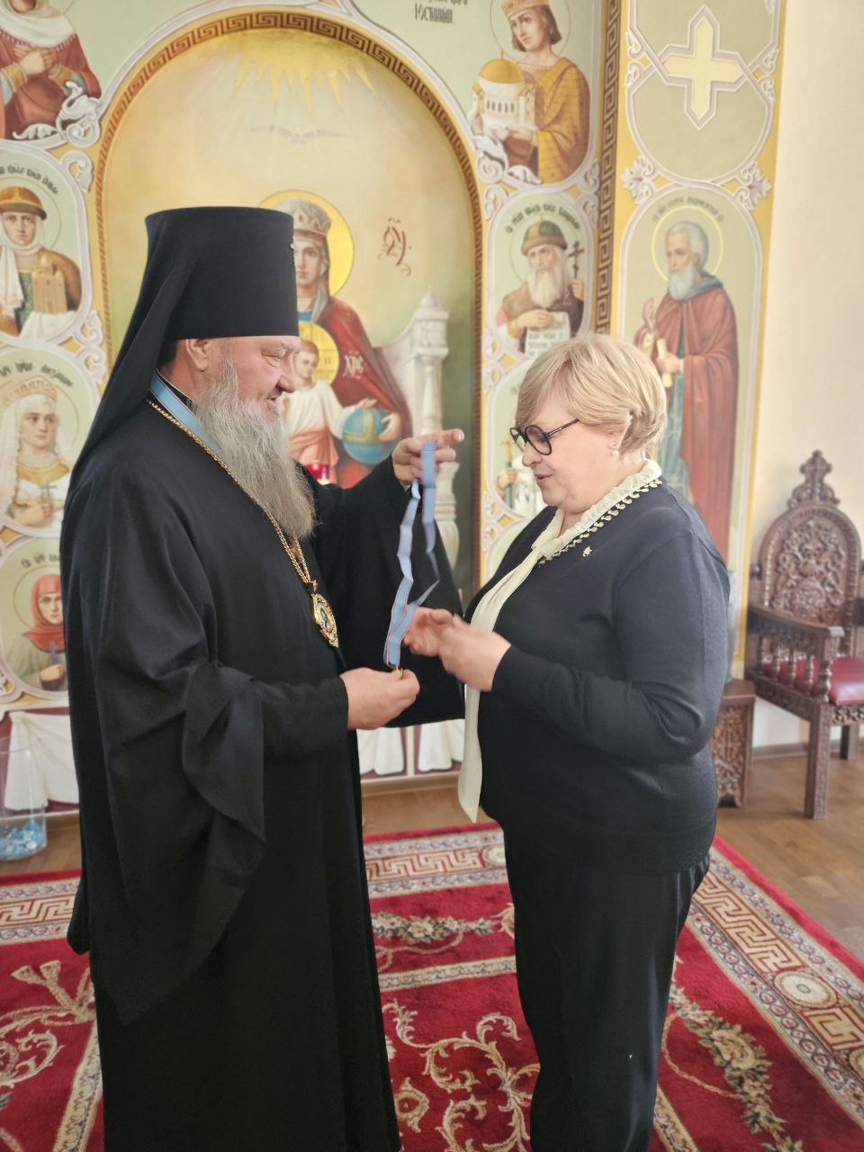Открывая заседание, Высокопреосвященнейший архиепископ Савва, возглавляющий представительство ИППО в Приднестровье, вручил членские знаки и удостоверения новым участникам Общества – вице-спикеру Парламента ПМР Галине Михайловне Антюфеевой и благочинному Бендерского округа протоиерею Михаилу Лунгу.