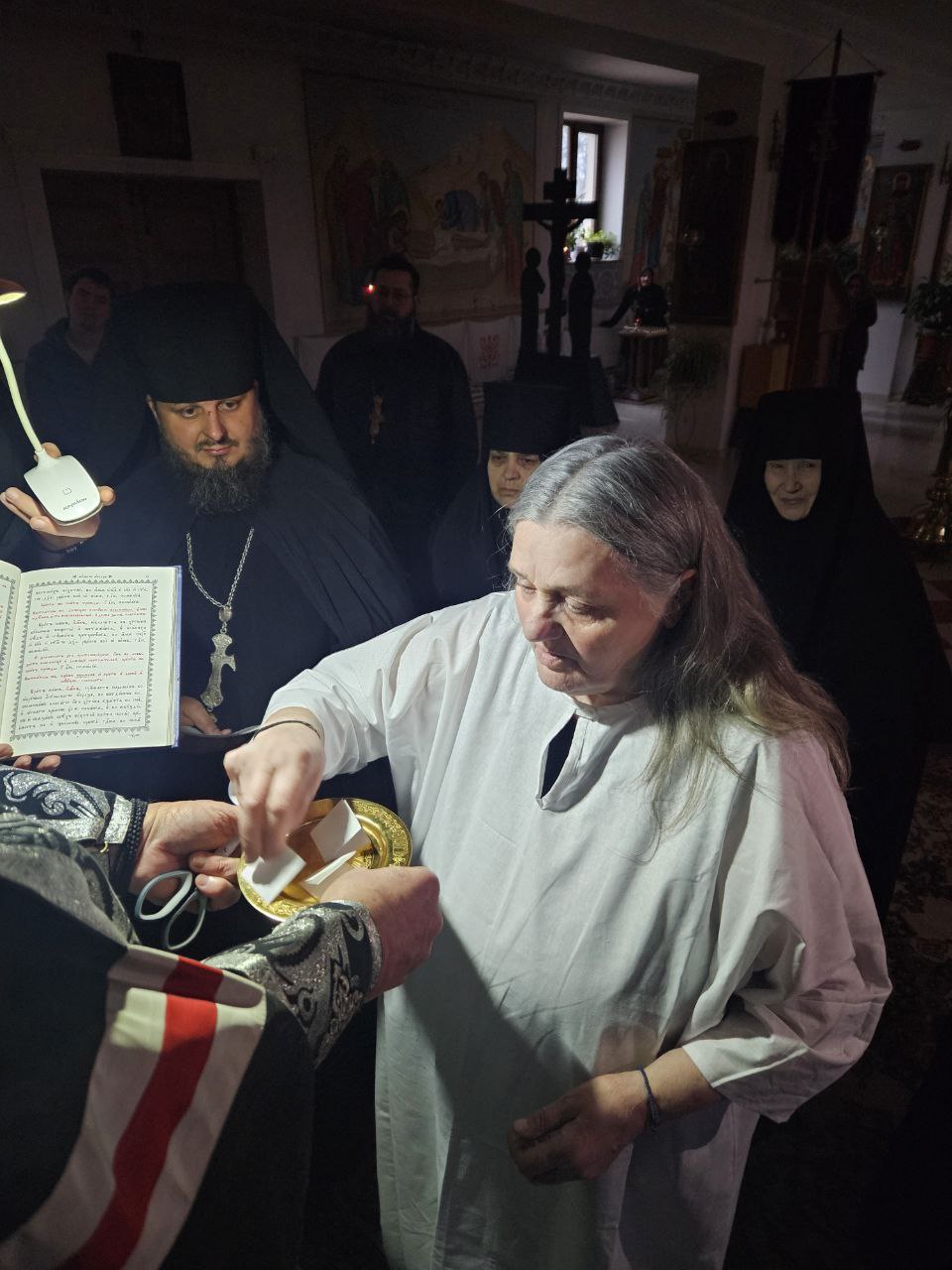 По завершении великопостного богослужения над одной из прихожанок храма было совершено пострижение в малую схиму с наречением имени Феофания. Новопостриженная монахиня на протяжении многих лет являлась постоянной участницей приходской жизни, проявляя усердие в молитве и церковном служении. Монахиня Феофания состоит в родстве с клириком епархии протоиереем Анатолием Каушаном, будучи его тёщей, и известна в приходе своим благочестием и ревностью к духовной жизни.