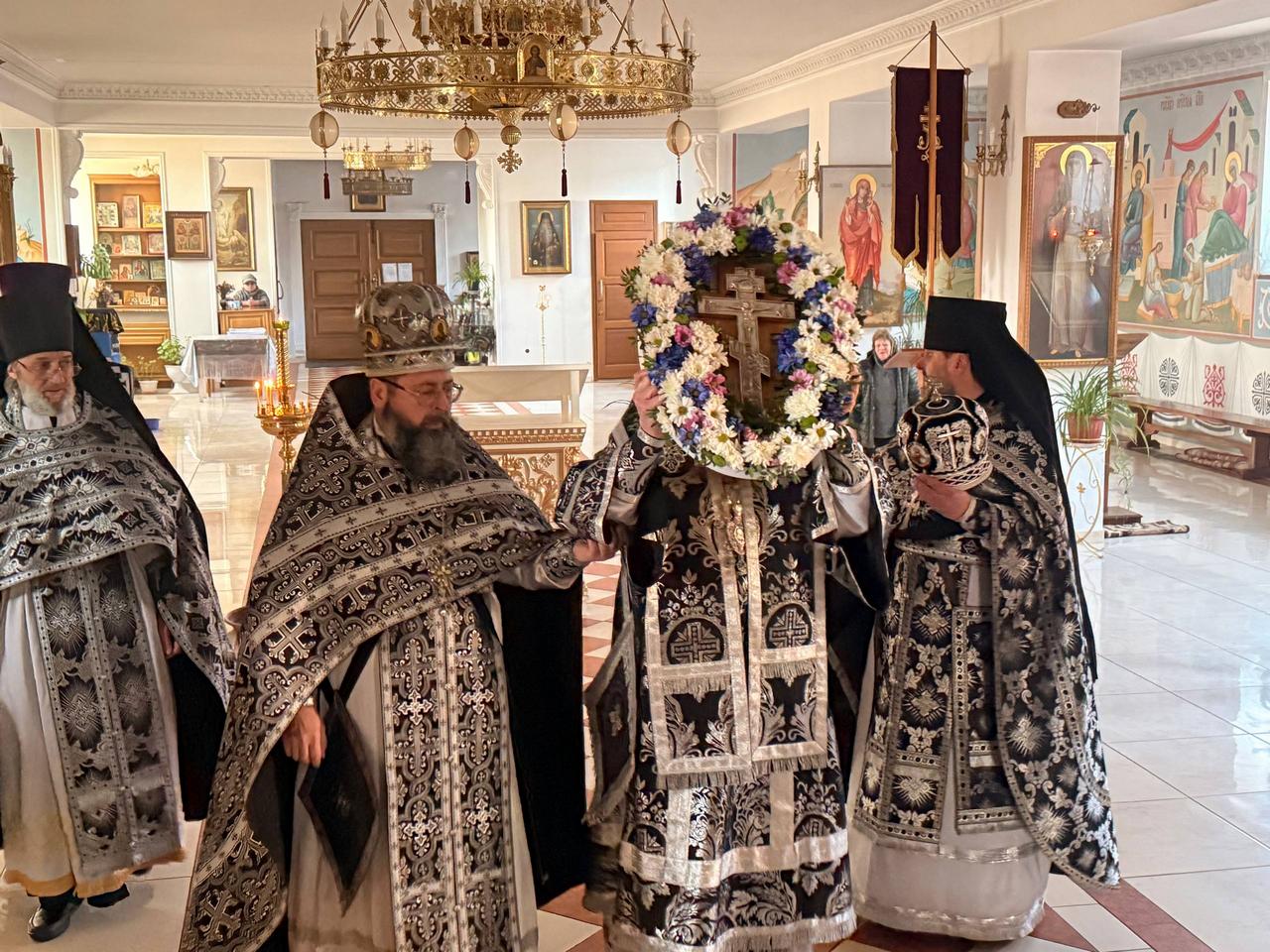 По окончании Божественной литургии перед находящимся в центре храма Крестом Господним было совершено поклонение святыне. Духовенство и верующие с благоговением приложились к Кресту, испрашивая у Господа укрепления в прохождении поприща Великого поста.