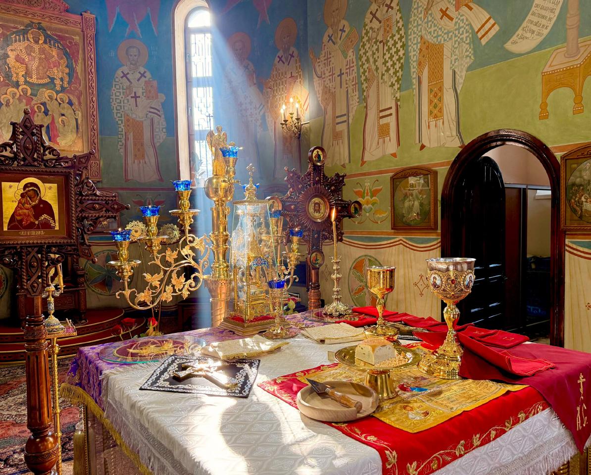 Его Высокопреосвященству сослужили иеромонахи Иоанн (Трайто), Симеон (Лупашко) и протодиакон Сергий Афтени. За богослужением молились многочисленные прихожане, собравшиеся для участия в воскресной литургии и причастия Святых Христовых Таин.