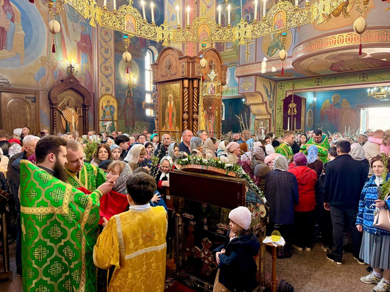 Его Высокопреосвященству сослужили ключарь и клирики собора. За богослужением молились многочисленные прихожане, собравшиеся, чтобы молитвенно встретить один из двунадесятых праздников Церкви, предваряющий дни Страстной седмицы.