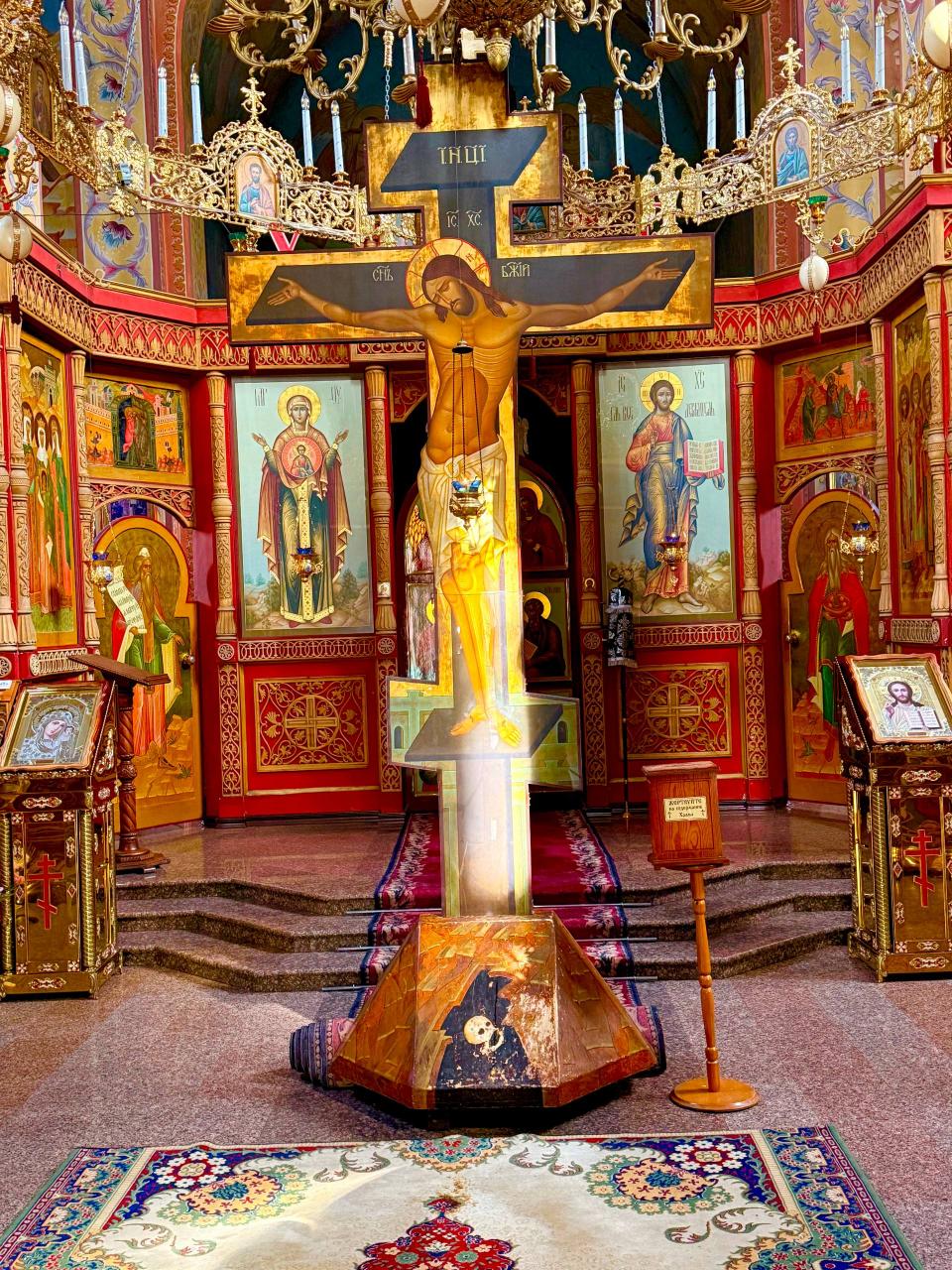 По окончании богослужения верующие с благоговением поклонились Распятию, вынесенному на середину храма.