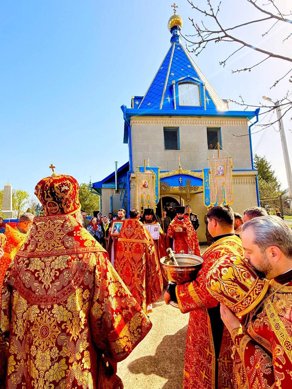 По окончании Божественной литургии был совершён крестный ход вокруг храма с чтением евангельских отрывков о Воскресении Христовом и окроплением верующих святой водой.