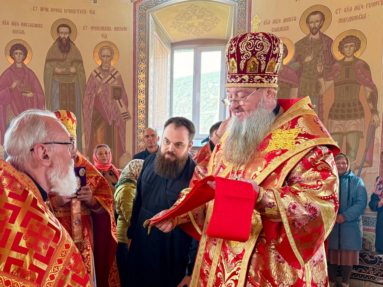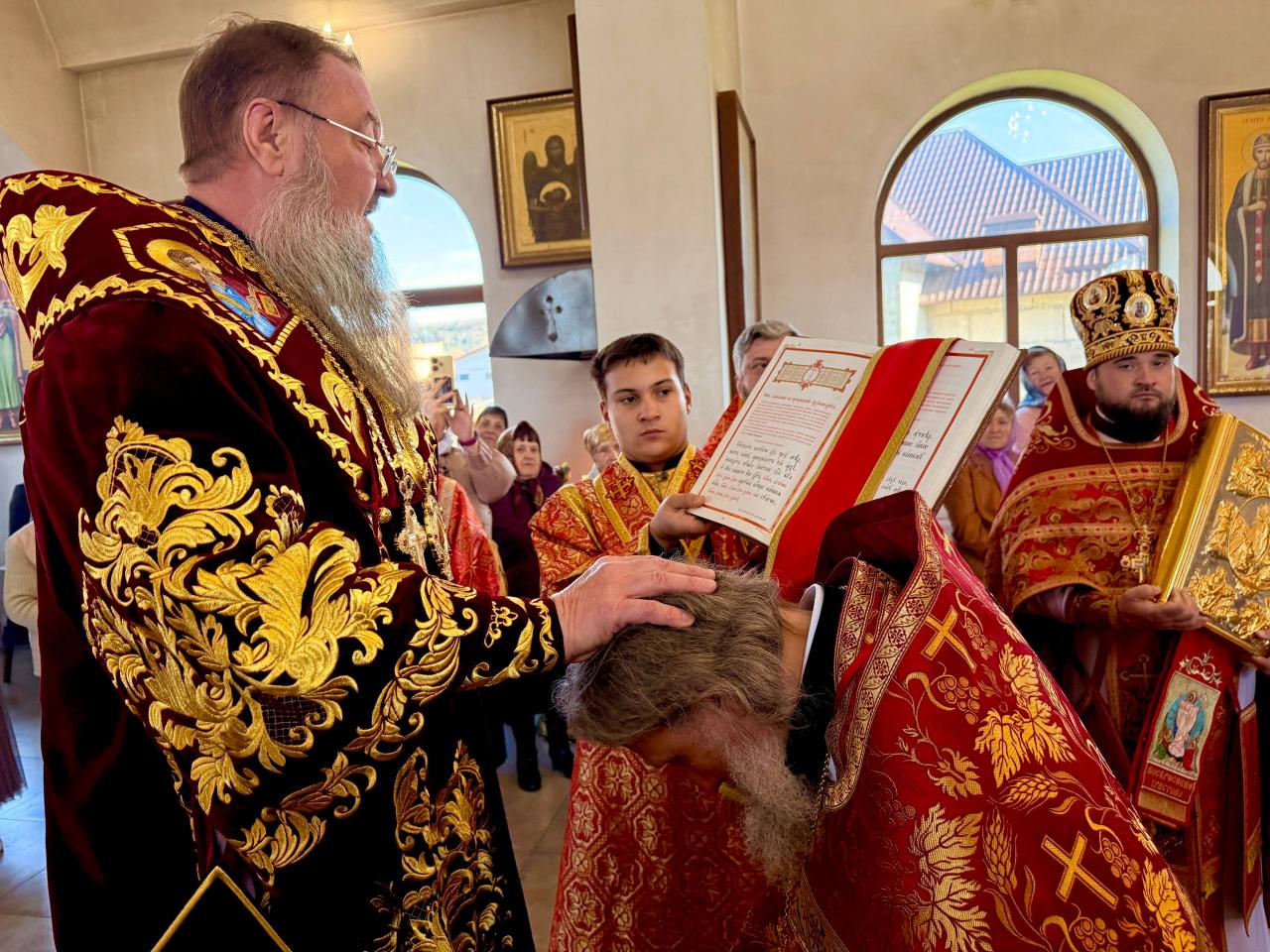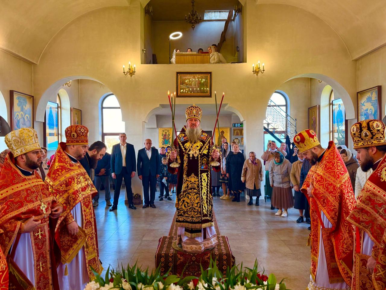У входа в храм Архипастыря встретили хлебом-солью несущий послушание настоятеля протоиерей Георгий Симак и многочисленные прихожане.
