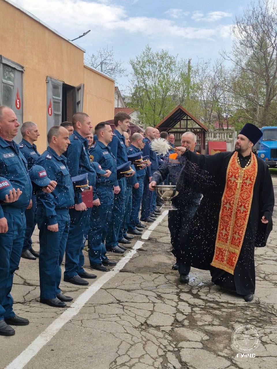 17 апреля, в день 108-й годовщины образования пожарной охраны, особое место в торжественных мероприятиях заняло молитвенное участие Церкви. По благословению священноначалия окормляющий Тираспольский юридический институт МВД иерей Георгий Кичка совершил чин окропления пожарной техники и личного состава столичной пожарной части святой водой, испрашивая у Господа помощи, крепости духа и сохранения для всех, кто несёт это непростое и ответственное служение.
