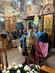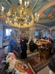 В завершение богослужения было совершено славление пред образом ныне прославляемого святителя Филарета Московского. Правящий Архиерей прочёл молитву этому Божию угоднику, после чего, под пение величания святителю, поклонился его честному образу.