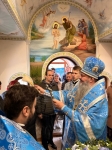 В завершение богослужения было совершено славление, после чего Высокопреосвященнейший Владыка окропил святой водой молившихся в храме. Архиепископ Савва поздравил участников богослужения с престольным торжеством и преподал всем архипастырское благословение.
