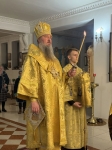 За богослужением Высокопреосвященнейший Владыка Савва совершил хиротонию клирика Михаило-Архангельского собора иеродиакона Лазаря (Сотникова) во пресвитера.