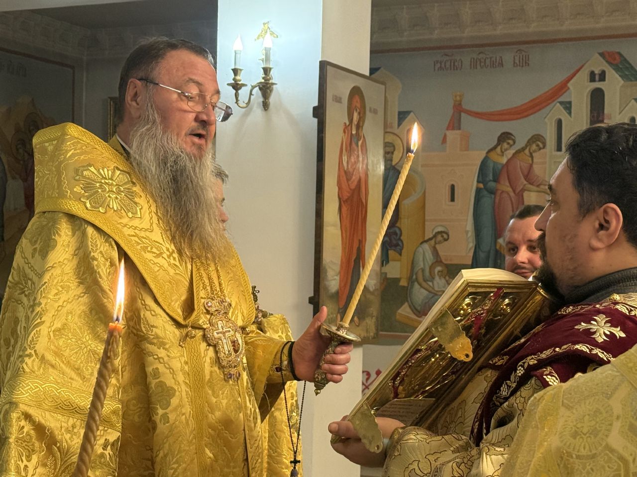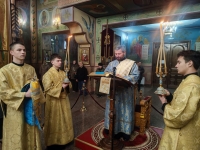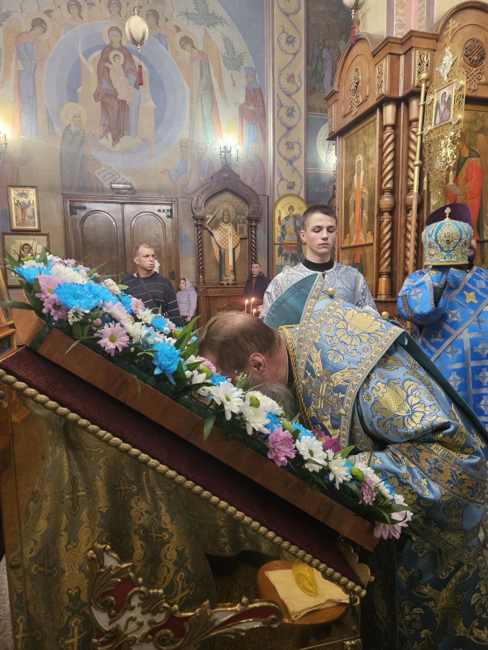 25 ноября, вечером накануне престольного праздника, служение Всенощного бдения с литиёй в нижнем Иоанно-Златоустовском храме прихода Воздвижения Креста Господня в Тирасполе возглавил Его Высокопреосвященство архиепископ Тираспольский и Дубоссарский Савва.
