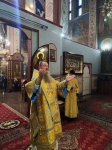 На полиелее Высокопреосвященнейшим Владыкой был прочитан положенный в дни памяти святителей отрывок из Евангелия от Иоанна (Ин. 10:1–9), после чего Архипастырь обратился к прихожанам, поздравив их с наступающим днём престольного праздника. Затем архиепископ Савва помазал святым елеем сослужившее духовенство и мирян.