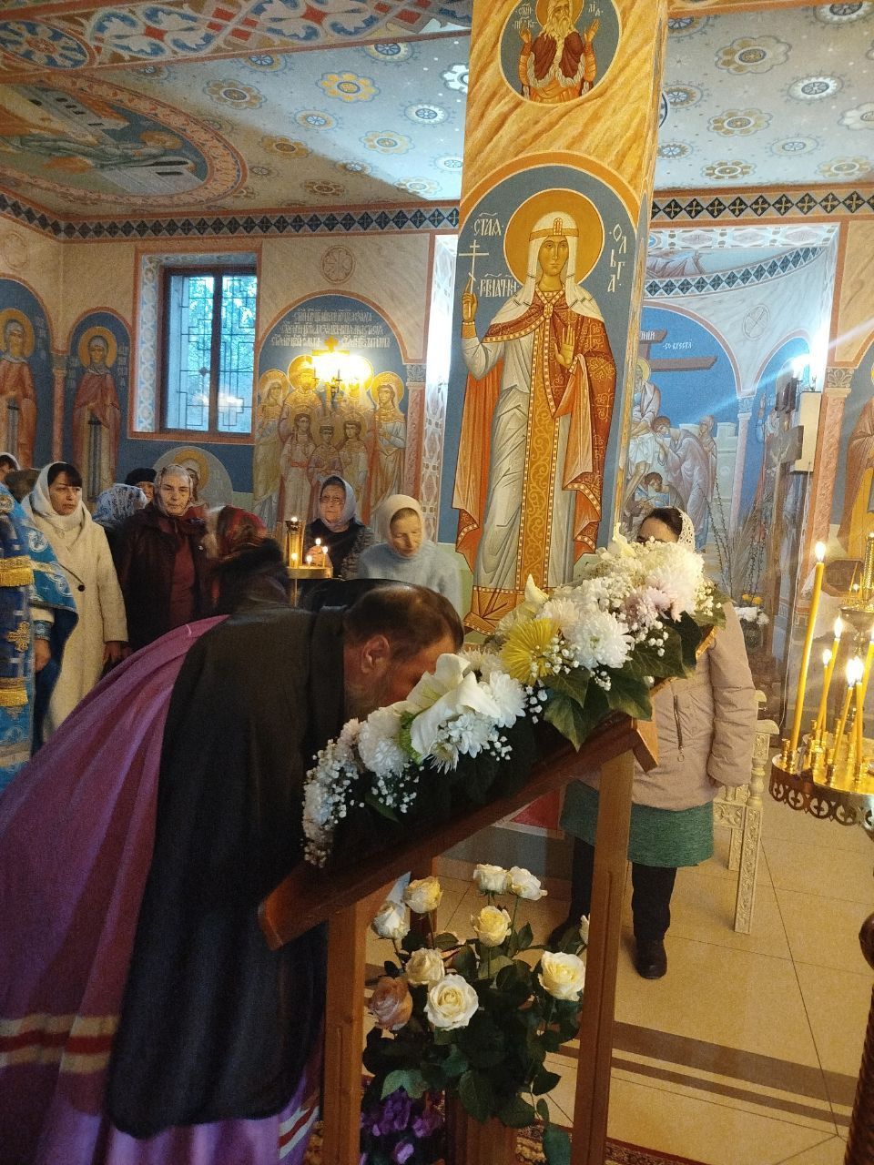 В завершение богослужения с образом свт. Иоанна Златоуста с частицей его святых мощей был совершён крестный ход вокруг храма с чтением Святого Евангелия и окроплением верующих святой водой.